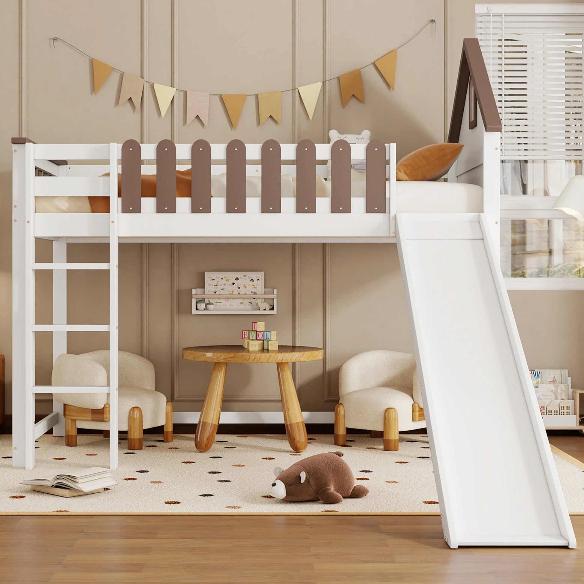 - Type de produit : Lit haut / lit mezzanine enfant avec toboggan